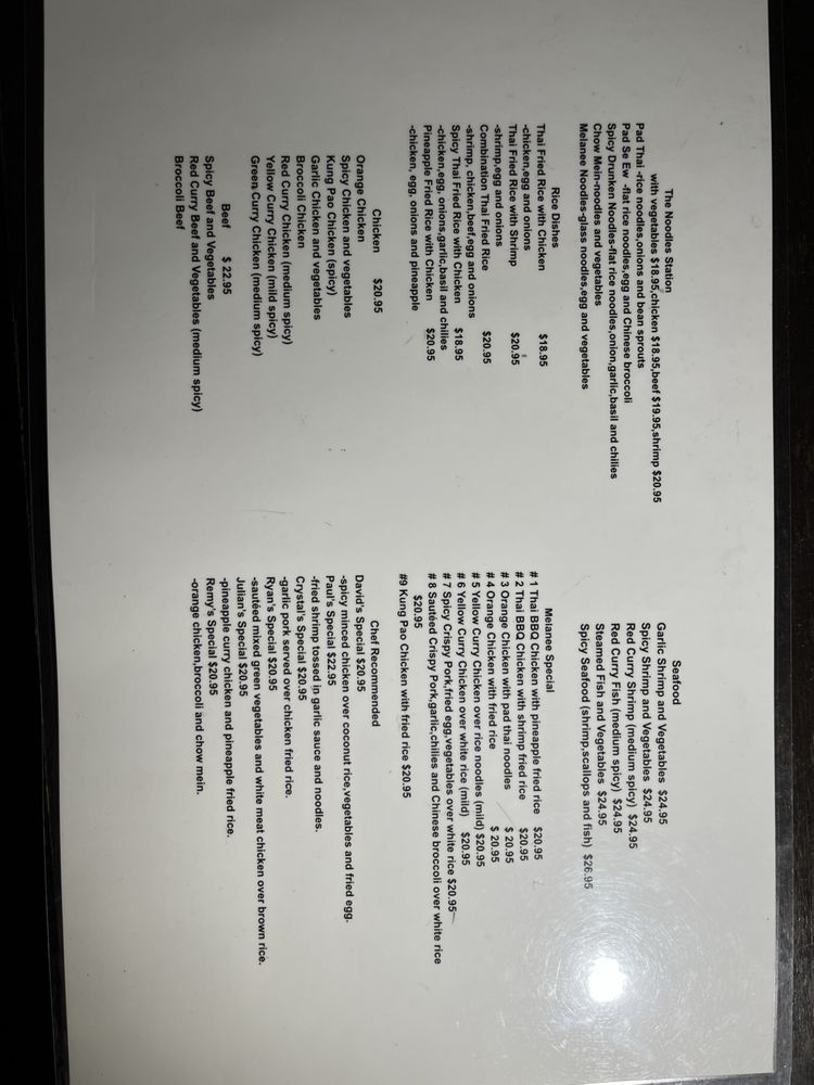 Melanee Thai Menu